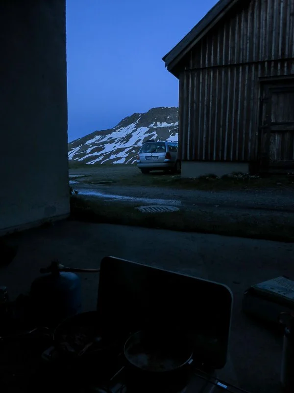 Wir bauen unsere improvisierte Küche auf, ein Vordach bietet Unterkunft, eine Biologin der Uni Basel warnt uns vor der kalten Nacht (was uns nur ein müdes Lächeln entlocken kann, schliesslich sind wir harte Bergsteiger) – aber die grosse Angst der Fahrenden ist beseitigt, heute werden wir wohl nicht mehr weitergeschickt. Man hat kein Recht, irgendwo zu sein, höchstens geduldet oder ignoriert wird man, und sonst weggeschickt mit einer Wut und einer Angst, deren Ursprung man nicht so recht begreifen kann. Vielleicht weil jeder Ort irgendwem gehört, und jede_r auch einen Ort besitzen sollte. Wir hingegen sind schon randständig, weil wir nicht in einem Bettchen in einem Häuschen liegen auf unserem Weibchen, sondern unter der Milchstrasse in unseren warmen Schlafsäckchen (ausser der Jakob, dem war kalt, da hatte die Biologin wohl doch recht. Der war wohl zu dünn, also der Schlafsack, obwohl er viel teurer war als meiner, dafür halt leichter. Oder der Jakob ist einfach ein Gfröörli) und auf unseren dicken Isomatten (ausser der Jakob, der hatte seine Matte mit Loch gekauft) inmitten der älplichen Nachtruhe (ausser der Jakob, der musste vor meinem Schnarchen flüchten). Aber man ist sich campierende Kletterer wohl schon gewöhnt hier oben. Ausserdem hat die Saison ja noch nicht angefangen, es liegt noch viel zu viel Schnee im Fels.
